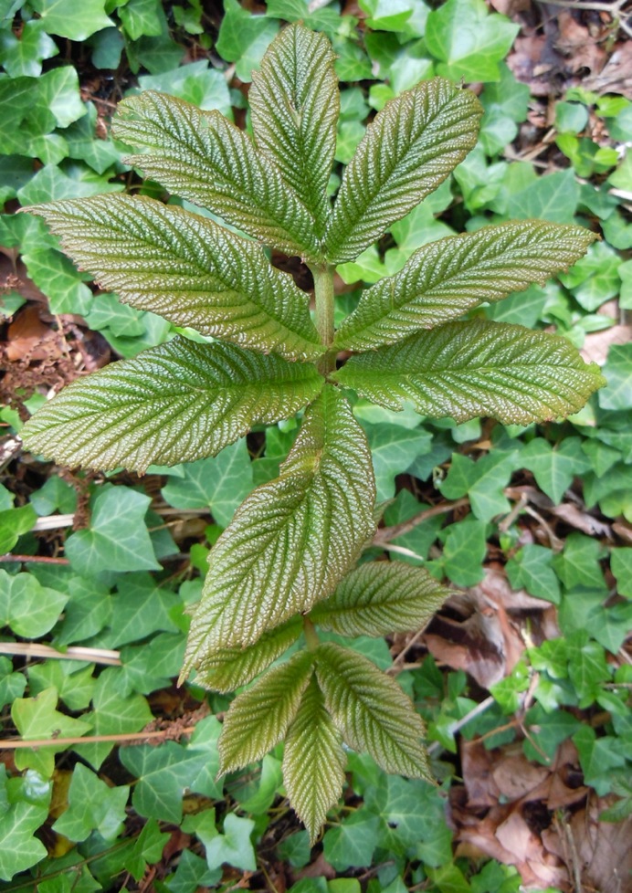 A rich metallic color to that Rogersia, Todd. And the leaflets' shapes are exquisite! Here is Peltoboykinia watanabei: