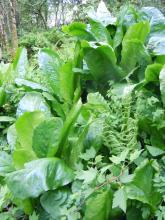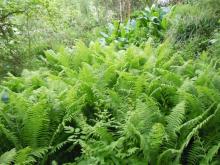 This fern, Matteucia struthiopteris, is a weed in the moist soil in my wood. And Lysichiton americanus is spreading rapidly too! Anybody who wants seed?