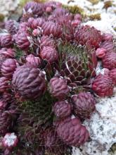 All the photos are of the same species. Its winter colour is red, and it's light green in summer. The rosettes get to their maximum size in tufa, which is about 1" (2.5 cm), though most are smaller. Thanks in advance.