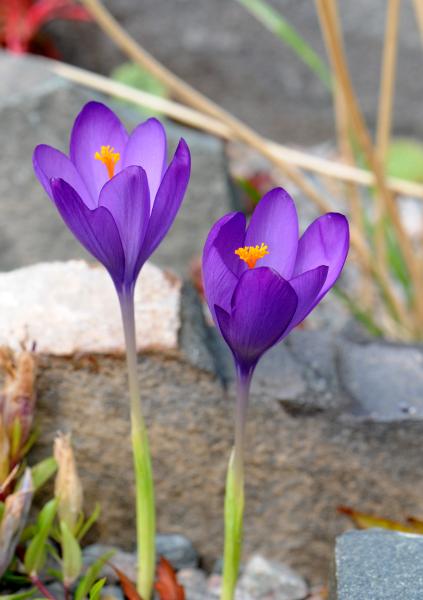 This autumn-flowering crocus is native in the Pyrenees, from SW France into Spain, but is now naturalized in the UK. In the wild, it occurs along alpine meadows and pastures, at elevations up to 2000m. Solitary flowers arise from a corm. The blossoms are goblet-shaped with a long tube. The colour ranges from deep purple to lilac-purple. The typical crocus leaves appear in spring. Unlike most autumn-flowering crocus, this species prefers to stay moist year-round.