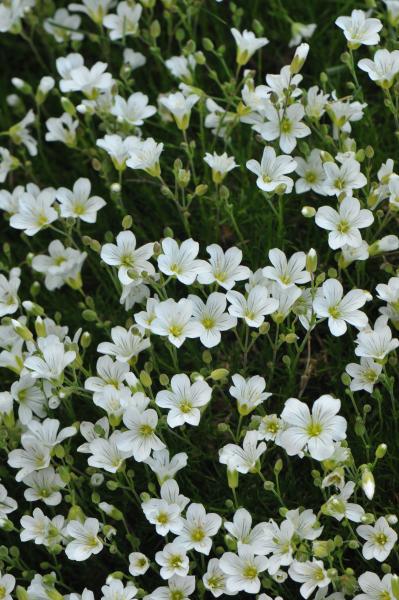Minuartia laricifolia, aka Arenaria laricifolia, is native to mountains of Southern Europe where it grows among rocky ledges and screes mostly above the tree-line. Plants form a loose mat with thread-like foliage and loose sprays of small 1-1.5 cm white flowers. Overall, it is somewhat similar to creeping baby's-breath, Gypsophila repens. In the wild, it blooms June to August.